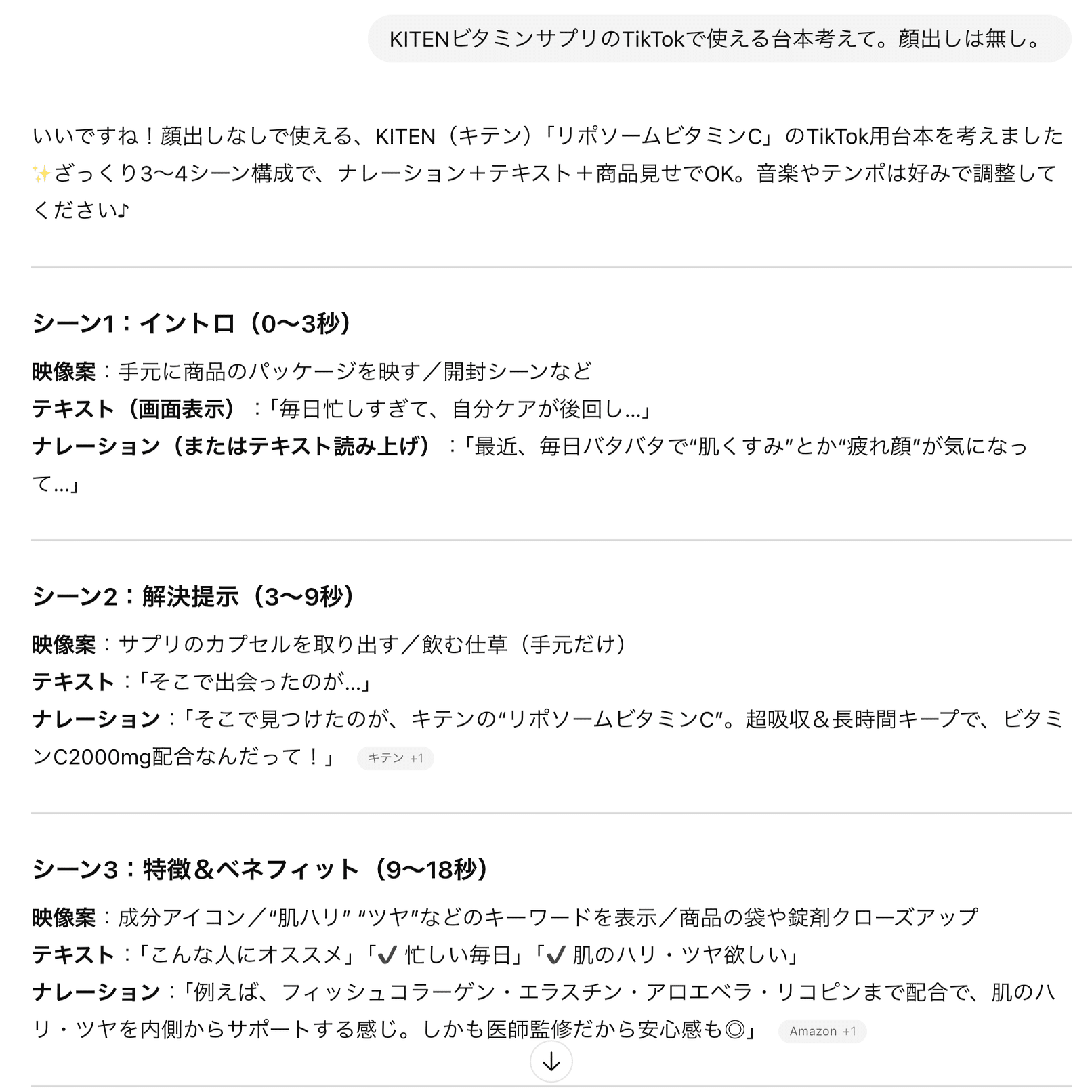 KITENというビタミンサプリの台本を書いてもらいます。