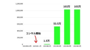 その結果、3か月で月50万、4ヶ月で100万を突破!